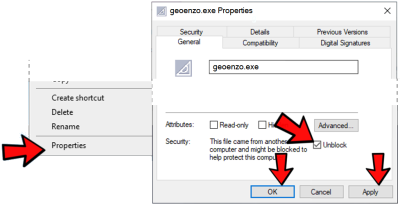 8. Unblock the program "geoenzo.exe" in your new "GeoEnZo" folder: